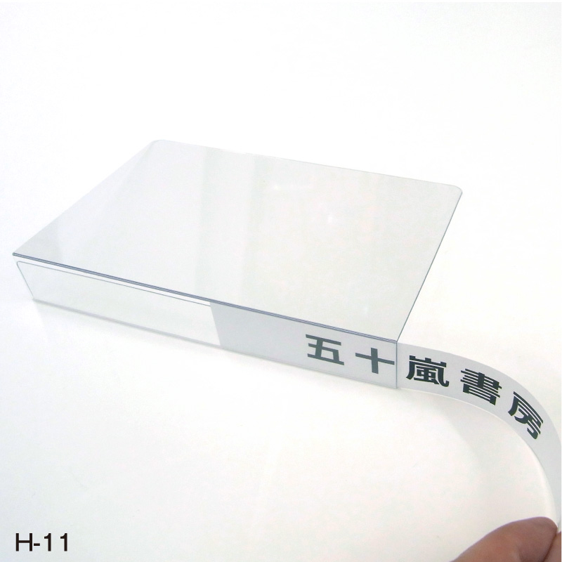POPを差し込んで使用する、透明な棚用見出しプレート。書棚、ファイル棚、CD棚などの分類・整理に役立ちます。